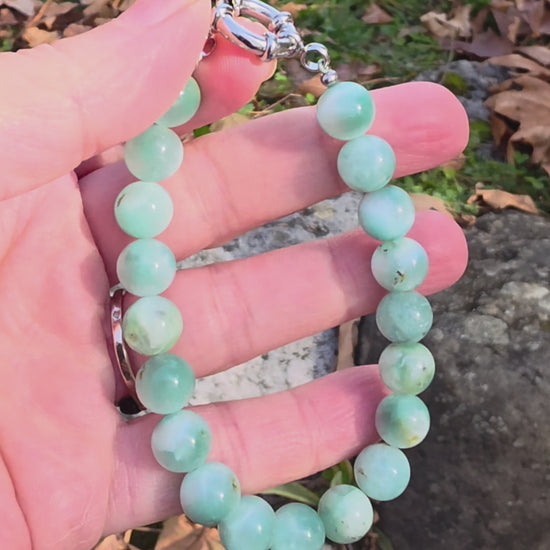 Bracelet en perles de pierres naturelles de hautes qualités avec un fermoir mousqueton et des attaches en acier inoxydable.