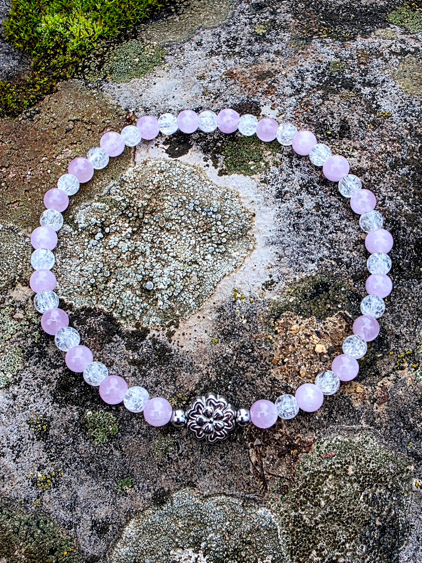 Bracelet Douceur & Equilibre - Kunzite & Cristal de Roche Craquelé 4mm